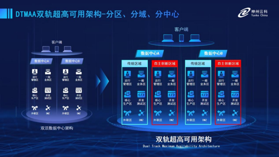 为帮助金融客户更好地应对数字经济时代对可持续性的高要求,实现“信创”与“数字化”齐头并进,k8凯发推出了双轨超高可用架构。该架构在双活数据中心的分区调度基础上,增加信创域和非信创域的分域调度,实行信创域与传统域应用全量部署,使双中心运营变为双中心四区域并行运行,互为多活,将“0到1”的单轨建设道路变为分区分域协同的多活双轨超高可用架构。帮助客户在新架构下,保障“信创”的同时解决性能瓶颈,提升稳定性,保证应用可持续性,最终实现信创区域和非信创区域的平滑过渡,完成国产化替代目标。